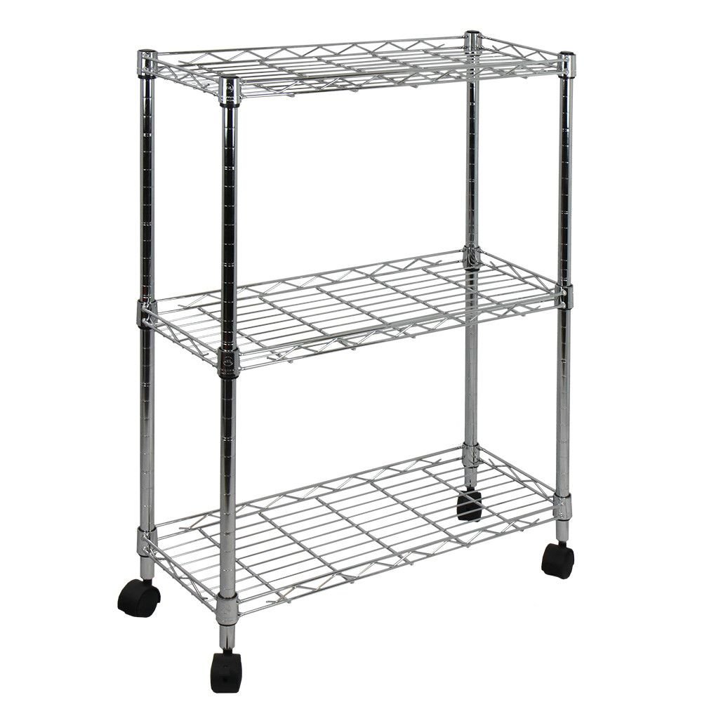 Organize your home, laundry room and work space effortlessly with the Oceanstar 3-Tier Shelving All-Purpose Utility Cart. Made with chrome plated steel, the utility cart is ideal for any environment as the casters provide convenience of transporting objects with ease. Each shelf can hold up to 150 lbs and the raised borders on the shelves keep items intact without falling or rolling off. The shelves are height adjustable to provide versatility to accommodate the size of the objects. The Oceanstar 3-Tier Shelving All Purpose Utility Cart is the perfect addition to any home, laundry room or work environment.